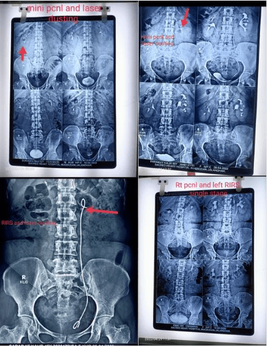 RIRS (retro grade intrarenal surgery) and mini PCNL are being performed regular basis at our Sacred Heart Hospital, Maqsudan, Jalandhar. Currently we are using Holmium laser for the stone fragmentation and dusting. Here are few of the kidney stones done recently with mini PCNL and RIRS laser lithotripsy with complete stone free rates.